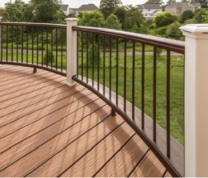 Trex Signature Railing: Made from powder-coated aluminum, it works with traditional and modern deck designs. It is available in neutral tones and carries a 25-year limited warranty. Balusters are available in round and square options. Railings can be custom curved to match the design of your deck. Cocktail rail can be installed as a surface for planters and drinks. Signature railing works well with all Trex decking and lighting!