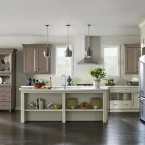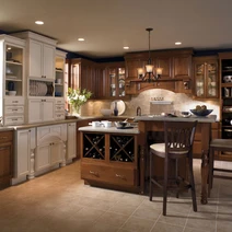 MAPLE KITCHEN CABINETS: Gone are the days of natural maple as it has aged to bright yellows and mellow golds. Maple is available in a mix of complementary finishes to create striking contrasts and soft complements to meet the design needs of any homeowner. Mix painted maple finishes with soft stained finishes that show the subtle wood grain to create the look you want. Pair with stainless fixtures and appliances for a transitional look or add black hardware and light fixtures for a rustic or traditional appeal.